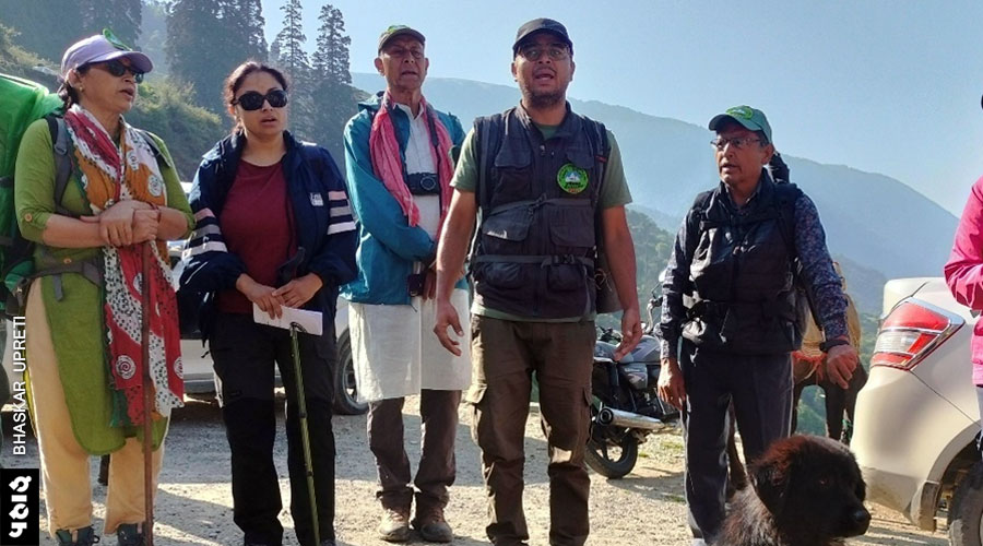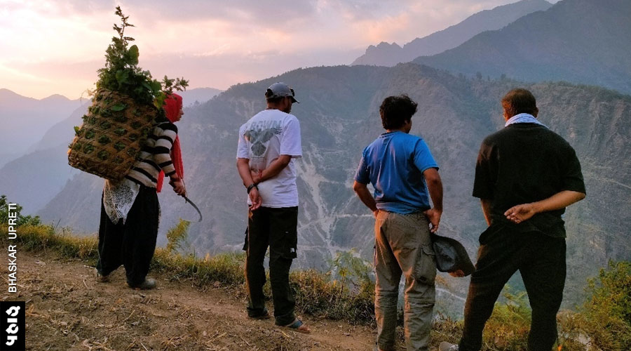 सुबह आँख खुली तो पता चला हम जन्नत में हैं। सामने हिमाद्रि की विस्तृत श्रृंखला। आस-पास के खेतों में कीवी की लड़ियाँ झूल रही थीं। पीठ पीछे लंबवत लोईधुरा बुग्याल। यहाँ ट्राउट मछली के दो बड़े सेंटर दिखे, जिन्हें लेकर ग्रामीण बहुत उत्साहित थे। कफनी और गोगिना का सड़क मार्ग होने और घने बाँज वनों की संपदा के कारण आने वाले दिनों में यहाँ पर्यटन गतिविधियाँ काफी जोर मारेंगी। यहाँ एक बड़ा कारपोरेट होटल भी कुछ समय पहले बना था। शक्ति हिमालयाज नामक कंपनी ने ‘लीती 360’ नाम का रिसोर्ट बनाया था। रिसोर्ट के लिए अपेक्षित एकांत अधिक लोगों की आवाजाही से प्रभावित हुआ तो अब इसका रेडीमेड ढांचा रमाड़ी के जंगल में शिफ्ट हो गया है। हालाँकि, ऐसे बड़े होटल स्थानीय लोगों के लिए लाभप्रद नहीं होंगे। इस होटल का शेफ तक तो सिंगापुर से आता है।