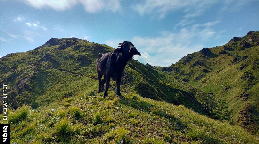 बोरबलड़ा के बाद रास्ता बहुत खूबसूरत हो चला था। बुग्याल दर बुग्याल। एक खड़ी चढ़ाई के बाद मातोली (मानातोली) बुग्याल आता है। इस मार्ग में दुलाम खरक भी कम आकर्षक नहीं। दुलाम से एक भैंस यात्रा दल के साथ लग गई। आगे बहुत दूर हिमनी गाँव था, उससे पहले कोई बसासत नहीं थी। भैंस शायद मिन्सिन टॉप से ही साथ आ गई थी लेकिन दुलाम के ढलान भरे बुग्याल में इसका यात्रियों को पता चला। मिन्सिंग से दुलाम तक का मार्ग बेहद खूबसूरत मगर डरावना है। पहली धार पर बनी महीन पगडण्डी से पैर फिसला तो खायी में जाना तय था। हर मोड़ भ्रम देता हिमनी के दिखाई देने का, मगर जितना चलते उतना ही दूर लगता। सबसे बड़ा संकट था पानी का। मार्ग में कहीं भी पानी का स्रोत नहीं था। ऊपर बुग्याल और हिमशिखर मगर नीचे निपट सूखा। दुलाम बुग्याल की तीखी ढलान मुश्किल से पार हुई तो घना-अँधेरा जंगल शुरू हुआ। यहाँ भी पानी नहीं। थुनेर के बड़े पेड़ों के साथ नई पौध भी यहाँ देखने को मिली। बुग्याल के तलहटी में झोपड़ियाँ दिखीं तो आस जगी मगर करीब पहुंचे तो वहां कोई नहीं था।