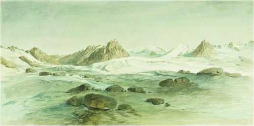 On their way to Yarkand, Hermann and Robert Schlagintweit set off from Changlung on 31 July 31 1856. The path crossed the pass, after which they reached the bottom of the Nubra River valley. The next halting-place in the valley was Pangtangsa. The whole upper part of the Pangtangsa depression was filled with firn deposits, a glacier extended down to the bottom of the valley and provided an interesting perspective.